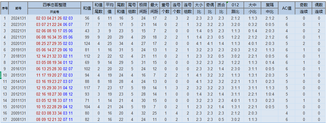 下图为大乐透彩种诞生以来每年的131期各类数据以及历年同日期开奖数据,各位大佬及彩友们请拿走~