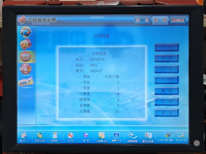宝鸡金台区双色球二等奖30万元选号机检索