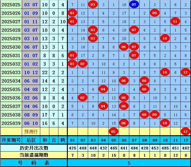 后区分析(定义:01-04为一区,05-08为二区,09-12为三区):上期后区开出奖号06和10,分别出现在第二区和第三区和区,最近10期后区三个区间落号个数比为6:10:4,本期后区注意第二区和第三区号码出现,关注两码05、12。