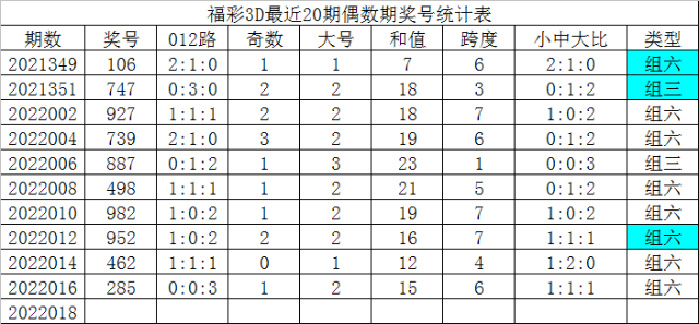 福彩3D最近20期偶数期奖号为: