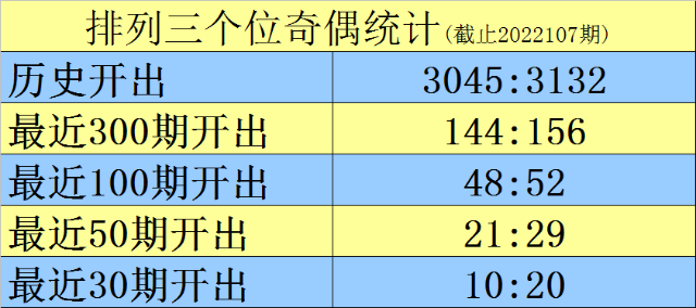 上期回顾:排列三2022107期奖号为064,类型为组六,奇偶比为0:3,大小比为1:2,和值为10。
