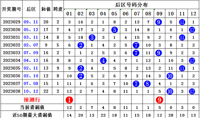 后区分析:上期开出号码10 12,近10期跨度2、7、8、5、2、8、9、8、1、2,推荐跨度8,本期推荐5码:01 02 08 09 10,精选推荐01 09