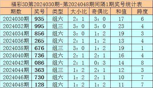 050钟天福彩3D预测奖号:类型分析