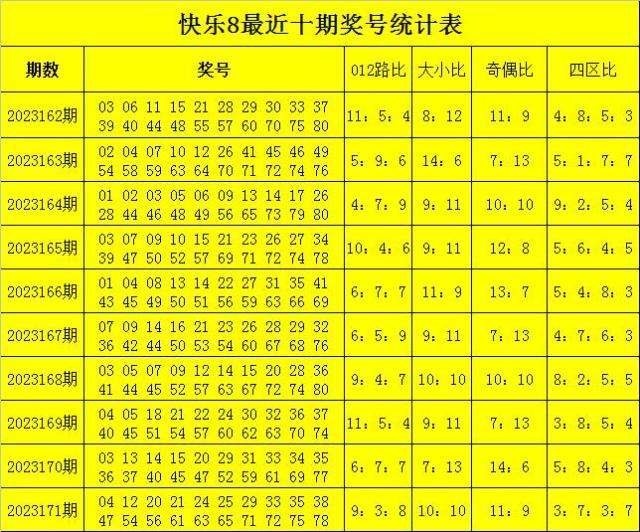福彩快乐8第2023171期开奖回顾:04 12 20 21 24 25 29 33 35 38 47 54 56 61 63 65 71 72 75 78,其中奖号012路比为9:3:8,和值为883,跨度为74,奇偶比为11:9。