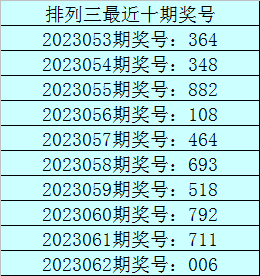 开奖回顾:排列三第2023062期奖号:006,类型:组三,奇偶比0:3,大小比1:2,和值6,跨度6。