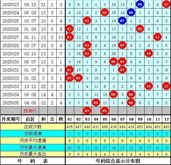 陆白秋体彩大乐透第2025036期星期六开奖号码分析: