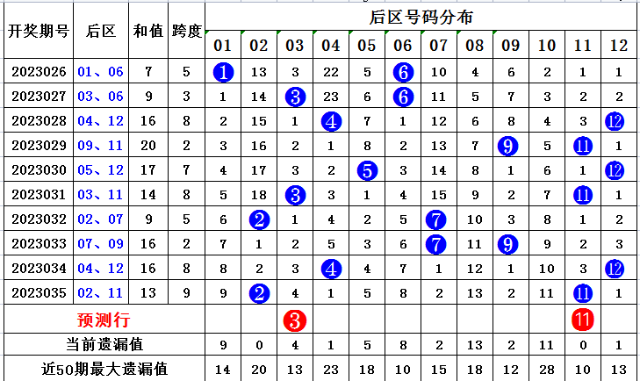 大乐透前区分析: