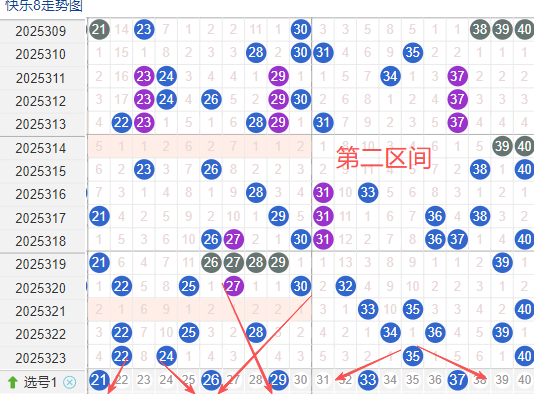 上期二区开出4个奖号(22.24.35.40)上期回顾二区开出4个奖号二区间在上期落位同比前期的话呈现了一个递减的落位趋势,先来看本期号码21整体活跃度较温热,在近 30 期里有一定的间歇性出现,不是每期都开,整体走势不是很稳定。号码26近期热度较热,间隔性还是很稳定,说明其在当前阶段活跃度较热注意防守。号码29近期活跃度较热,有一定的间歇性近期整体走势相对平稳有特别明显的冷热趋势变化,号码37近30期内活跃度较热,没有明显的连续出现形态走势,整体表现比较稳定。