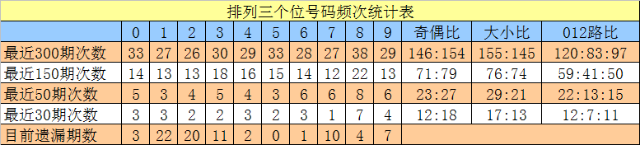 百位号码:前50期走势活跃的号码为:8、9开出7个,0开出6个;走势最冷的号码为:6开出3个,3、5、7开出4个。奖号012路比开出20:14:16,奇偶比开出24:26。本期百位杀排除:3、8,注意号码4、5、6,胆码参考4。