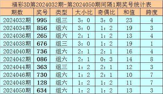 其中大小比0:3,奇偶比1:2,和值7,跨度4。