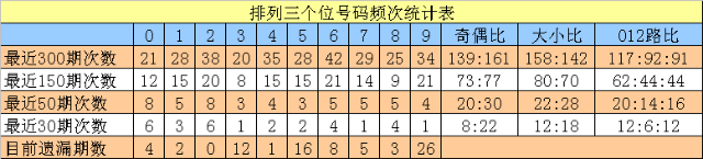 上期回顾:排列三第2023023期开出奖号342,号码012路比为1:1:1,奇偶比为1:2,大小比为0:3,和值为9,跨度为2。