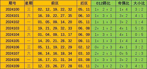 前区大小比分析:上期前区开出大小比4:1,近十期大小比是:29:21,本期预计开出大小比是2:3。