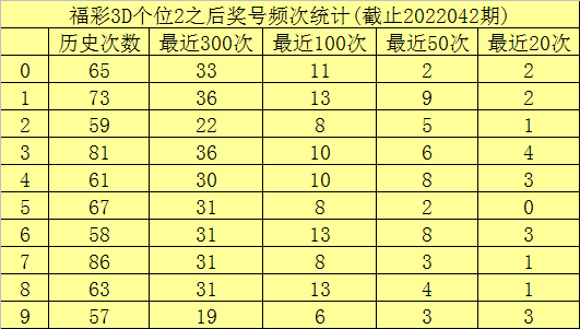 个位杀号:上期个位奖号为2,历史上个位奖号2共开出671次,最近100次个位奖号2出现时,其下期号码0-9开出次数分别为:奖号1、6、8开出13次,0开出11次,3、4开出10次,2、5、7开出8次,9开出6次。