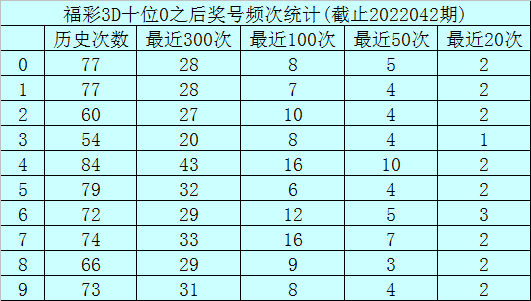 十位杀号:上期十位奖号为0,历史上十位奖号0共出现717期,前100次十位开出奖号0时,其下期0-9奖号频次分别为:奖号4、7开出16次,6开出12次,2开出10次,8开出9次,0、3、9开出8次,1开出7次,5开出6次。