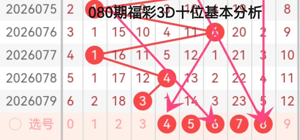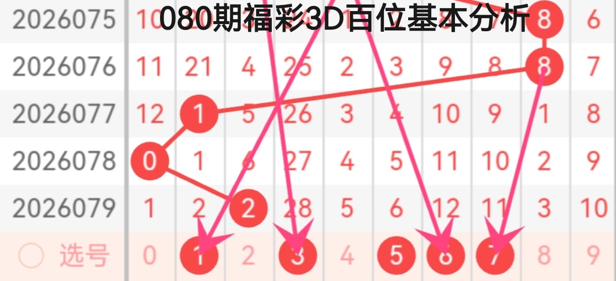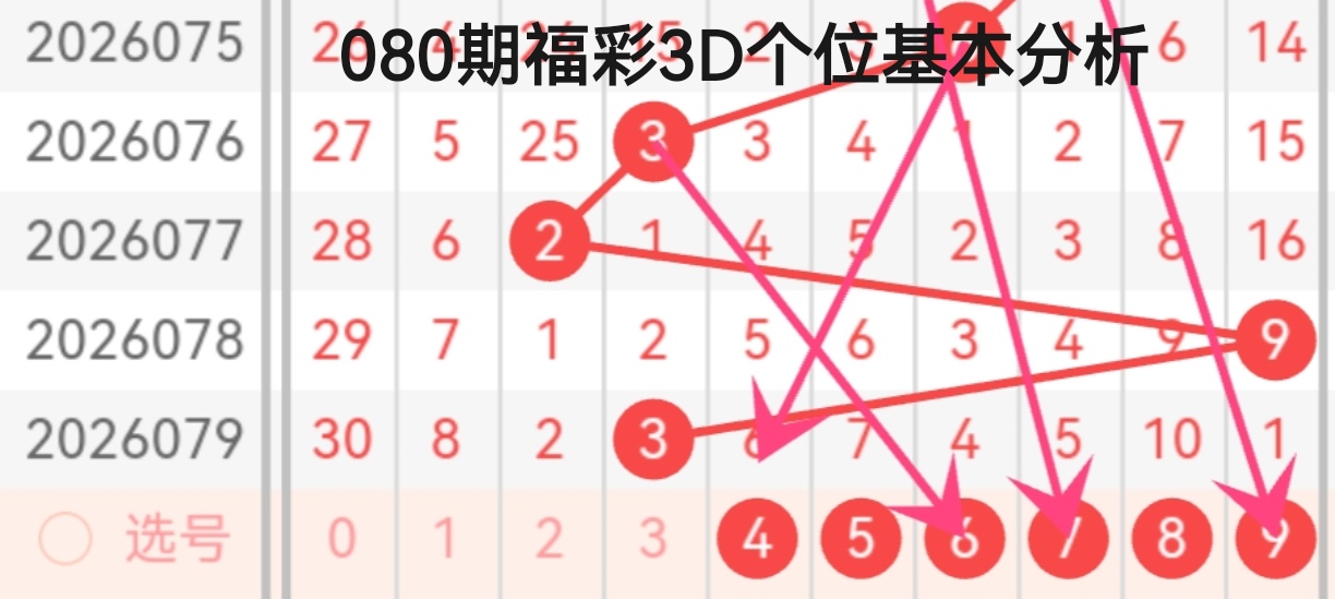 咱们用“定位法”进行080期福彩3D的分析: