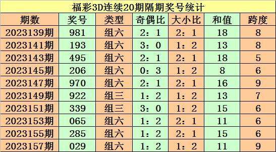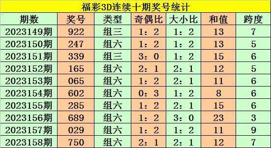 上期回顾:福彩3D第2023158期奖号:750。组六、大大小、奇奇偶。