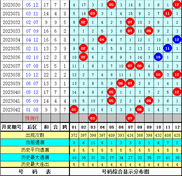 陆白秋体彩大乐透第2023043期星期三开奖号码分析: