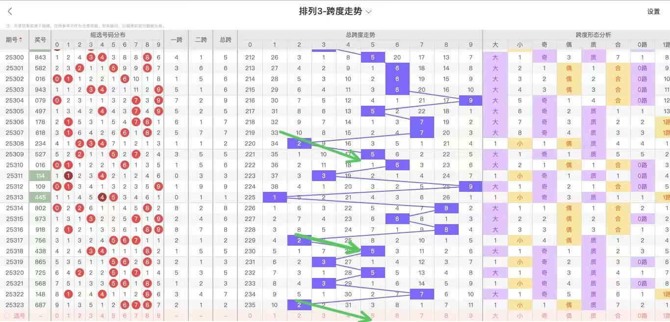 10期内跨度走势为:8-6-8-2-5-3-5-3-7-2,10期内大小跨比:6:4,奇偶跨比5:5,百期内跨度2共开出的13次,下期数据:9 5 7 4 5 5 7 3 5 3 5 5 近期度较热,考虑跨度2开出后容易出小跨度,近期大小规律下大:偶:合,所以接下来继续大跨,偶跨度表现!