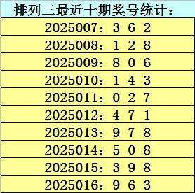 上期回顾:排列三第2025016期开奖号码为963,历史上组选出现39次,直选出现4次。
