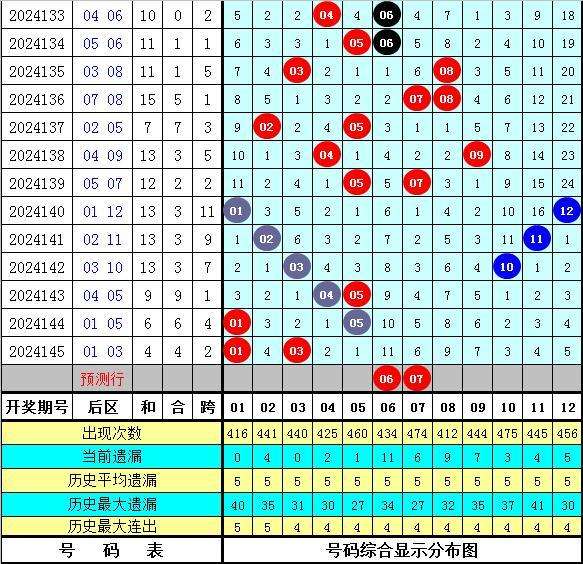 上期回顾:大乐透第2024145期开出奖号:01 06 09 22 24 + 01 03,前区包含5个尾数:1、2、4、6、9,后区开出全奇、全小组合。
