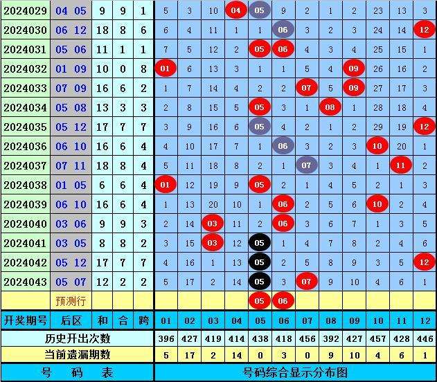 后区分析:上期后区开出一大一小组合:05+07,最近10期后区奖号大小比为8:12,本期预计后区开出全小组合,看好两码05、06。