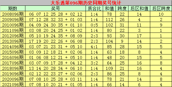 大乐透历史同期第2022096期奖号分析: