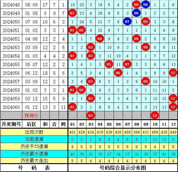 6、在历史同期第061期开奖中,后区全小组合出现4次,一大一小组合出现10次,全大组合出现3次,本期后区注意一大一小组合出现,关注号码01、03、09、10。