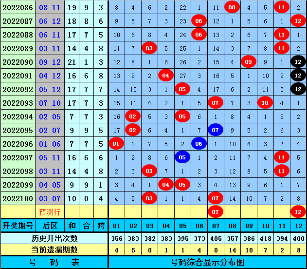 后区分析:上期后区开出奖号03和07,为0路号码和1路号码。最近7期后区012路号码个数比为3:4:7,本期后区注意0路号码和1路号码组合,关注两码07、12。