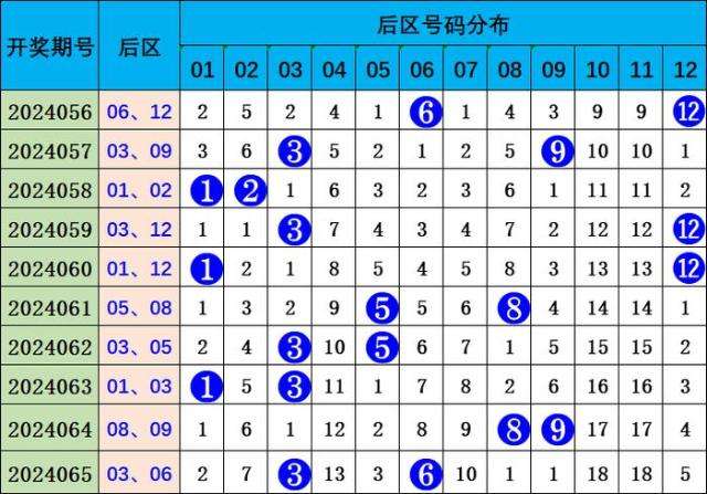 前一区(01-12):最近10期共开出13个号码,出号较冷,该区奖号本期关注:03、08。
