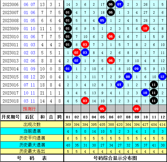 后区分析:后区上期开出奖号03、11,为全奇组合,本期后区看好奇数号码再次大热,注意全奇组合继续出现,参考两码05 09。