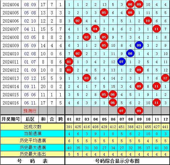 出现1次的奖号:04 08 09 10 11 12