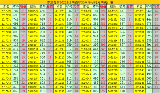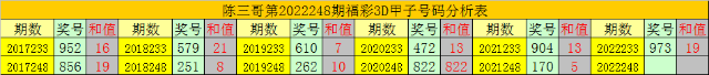 陈三哥3D第2022248期甲子号分析: