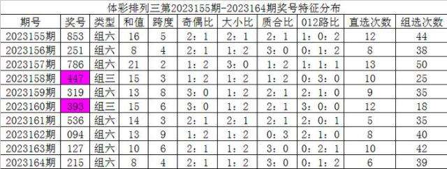 开奖公告:体彩排列三第2023164期开出奖号:215。组六,有重号:1、2,奇偶比2:1,大小比1:2,012比0:1:2,和值8,跨度4。