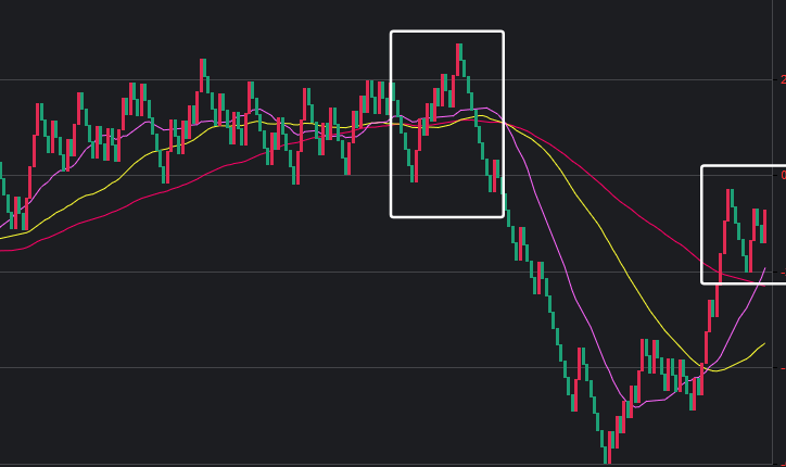 可以看到一些规律,在白框中,如果一致,那么接下来这些跨度也会出。
