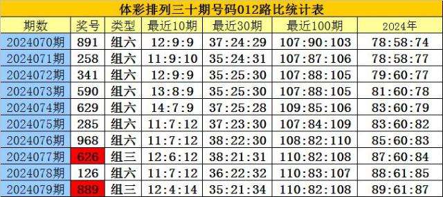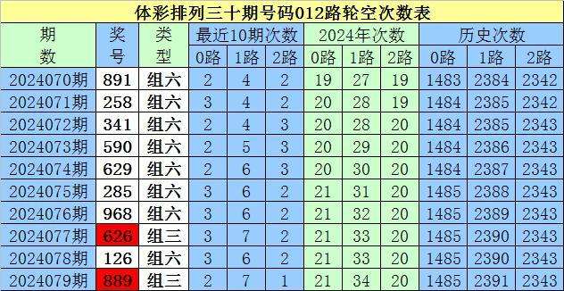 开奖回顾:排列三第2024079期奖号为:889,号码012路比为1:0:2。