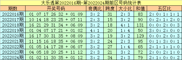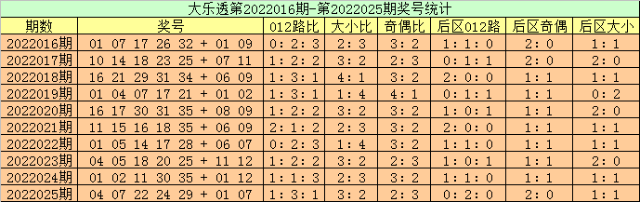 开奖回顾:体彩大乐透第22025期奖号为:04 07 22 24 29+01 07,前区奖号012路比为1:3:1,奇偶比为2:3,大小比为3:2,后区为全1路号码。