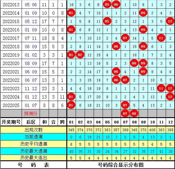 后区第二位:上期开出1路奖号07,其中1号码间隔2期再次出现,第二位最近10期号码012路比为6:2:2,最近20期号码012路比为11:5:4,最近50期号码012路比为24:10:16,本期第二位关注2路号码,看好号码08。