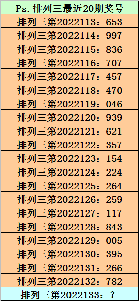 排列三第2022133期单注参考:719