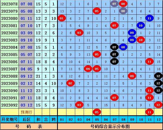 后区分析:上期后区为一奇一偶号码03+12,最近10期后区号码奇偶比为12:8,最近50期后区奇偶比为57:43,本期后区看好全奇组合,参考号码05、11。