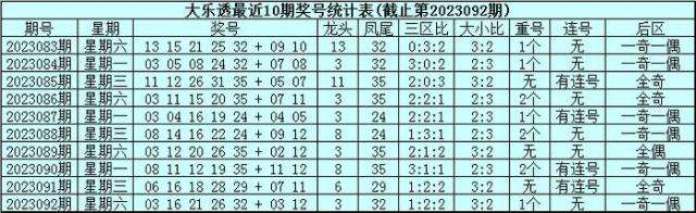 大乐透第2023092期奖号为:03、16、21、26、32+03、12。其中前区三区比为1:2:2,大小比为3:2,包含1个重号,没有出现连号,后区为一奇一偶号码。