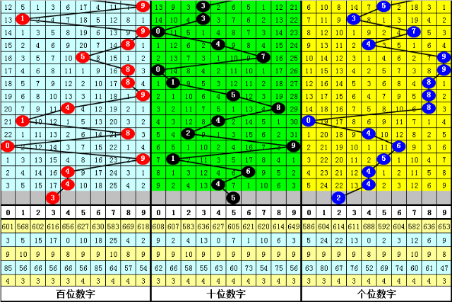跨度分析:在排列三第101期历史同期中,奖号跨度大小比为9:8,012路比为8:4:5,奇偶比为9:8,跨度出现期数为:跨度3、4、5、6→3期,跨度2、9→2期,跨度7→1期,跨度0、1、8→0期,本期预计开出小跨度,精选跨度3。