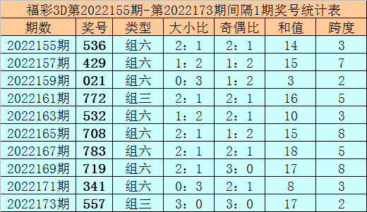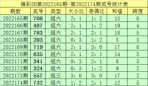 其中大小比1:2,奇偶比2:1,和值12,跨度5。