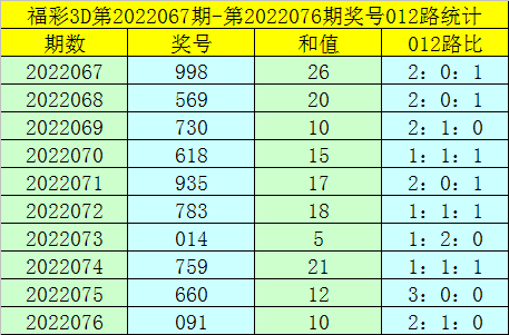 除3余数:上期除3余数比为2:0:1,上期余1奖号没有出现,本期防止回补,预计余0号码走冷,防轮空,余数比参考0:2:1。