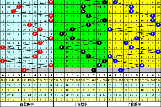 百位上期开出号码9,上升9点位,本期注意该位下降,参考号码4。