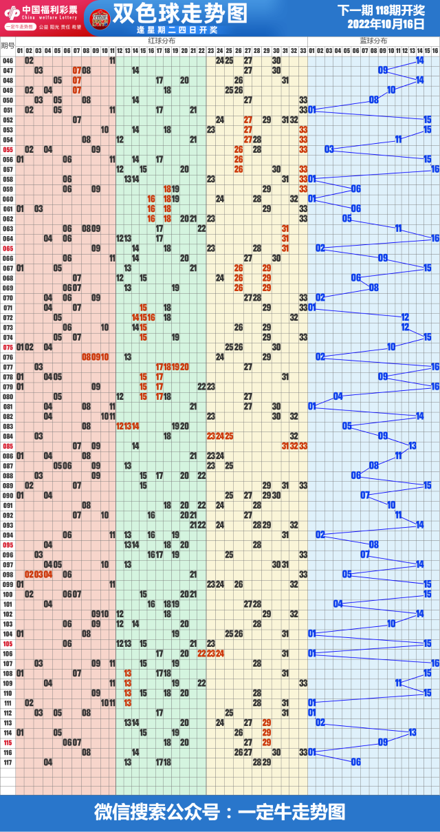 22年第118期福彩双色球近期走势图表