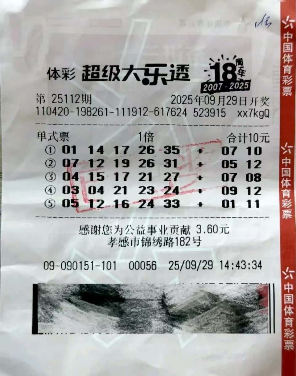 江苏男子在南京和湖北孝感买同一组大乐透中一等奖,两天领走2千万:孝感是让姐姐买的