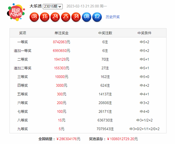 大乐透第2023015期奖号开出:前区08、16、24、25、34,后区08、12。前区号码五区比为0:1:1:2:1,质合比为0:5,012路比为1:3:1,后区开出2路+0路号、全合组合。