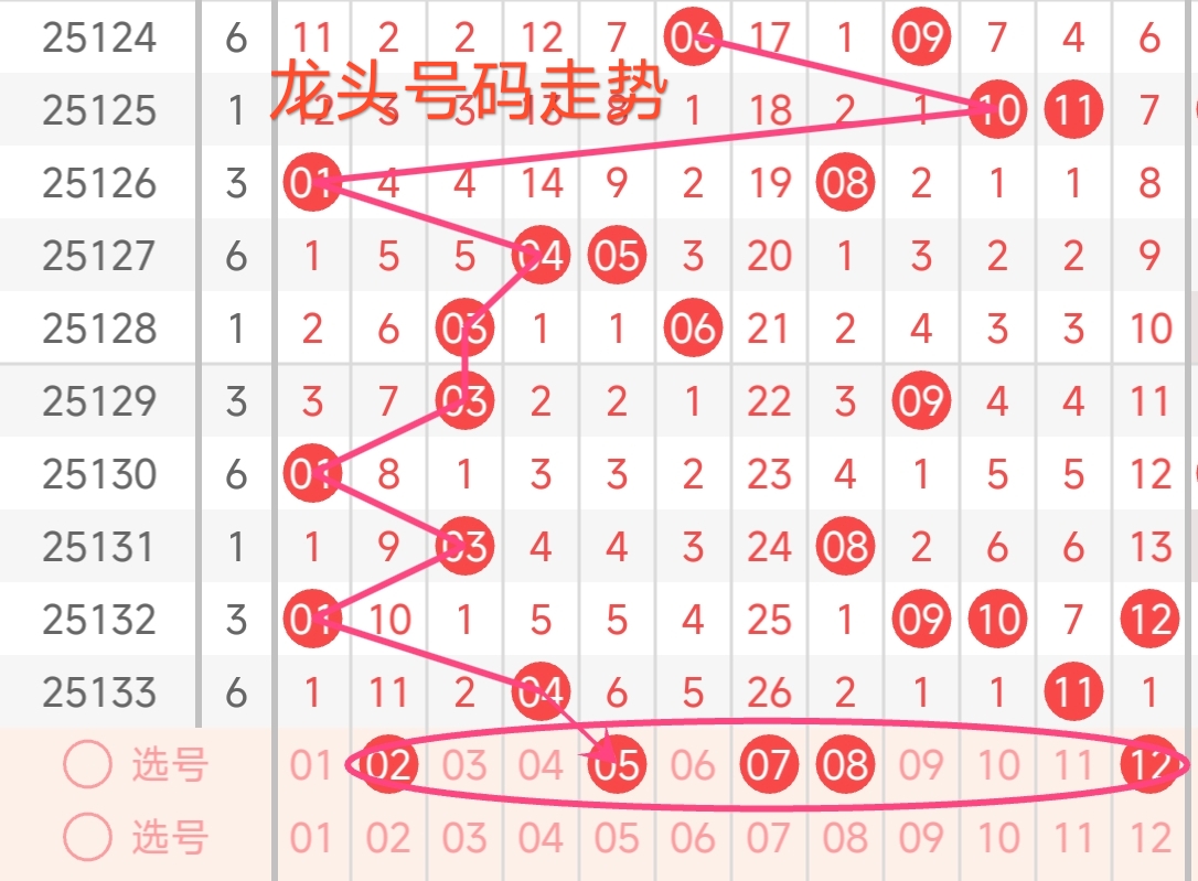 龙头号码走势分析: