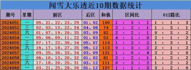 上期回顾:大乐透2024060期开奖,本期奖号:前区03、21、25、28、30后区01、12。当前前区和值107,区间比1:1:3,012路比3:2:0。