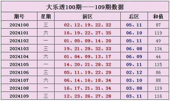 大乐透第2024109期出奖号统计:前区12、23、26、27、28,后区03、11。和值为116。